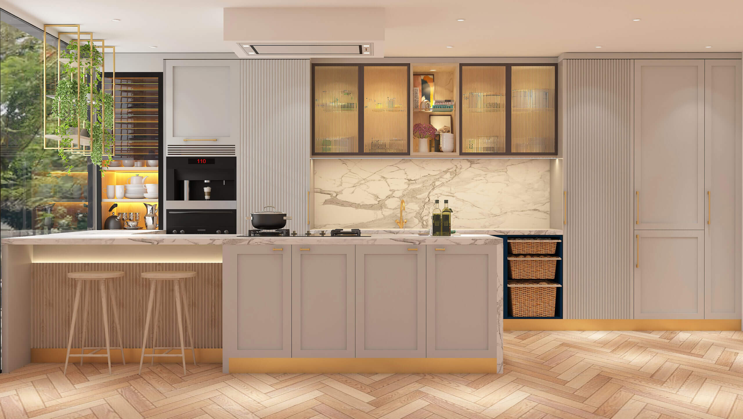 Our modern kitchens are designed typically for open spaces, minimalist features and simple colour palettes offering a clutter free space to relax and entertain. The term modern encompasses everything that’s sleek and streamlined. With a mix of materials like Laquer, Veneer, Aluminium, Fluted Glass, one can design the modern kitchen of their dreams.